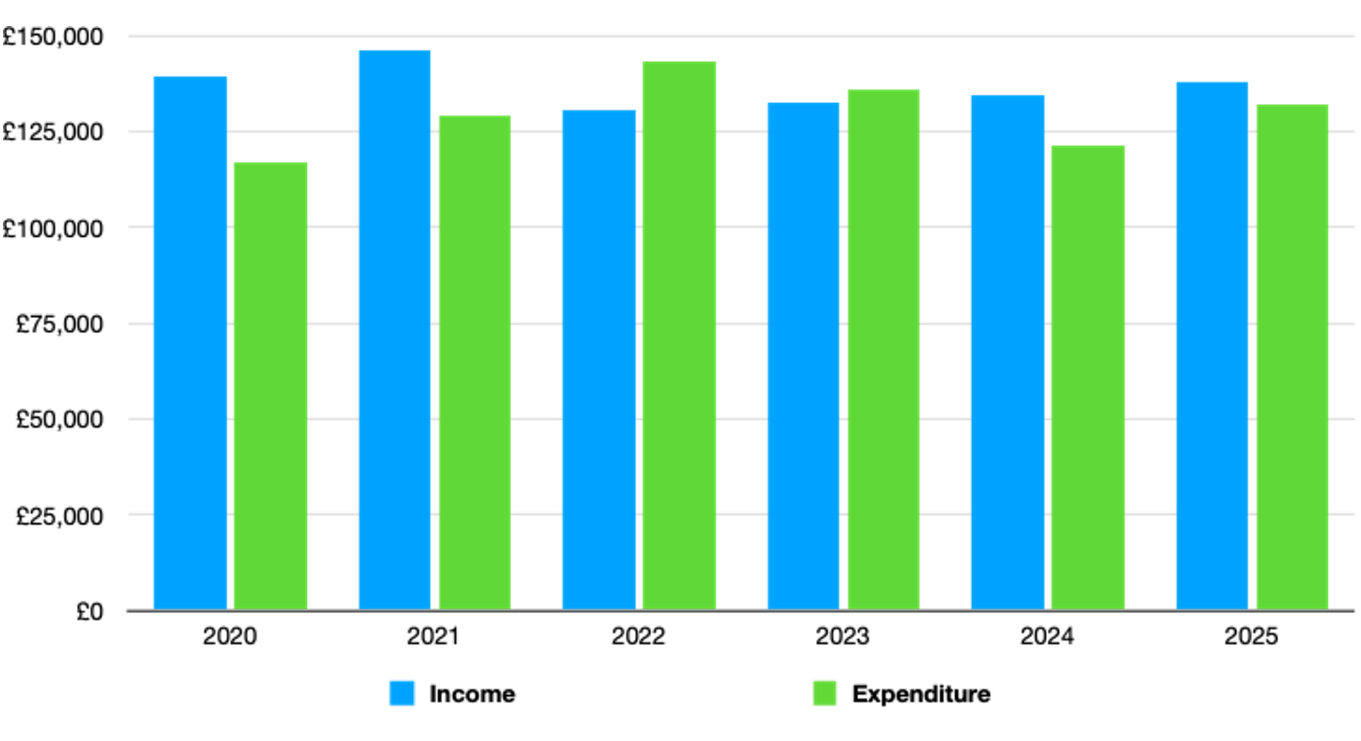 Our total expenditure for 2025 was £132,270, so we had a net income of £5,770.